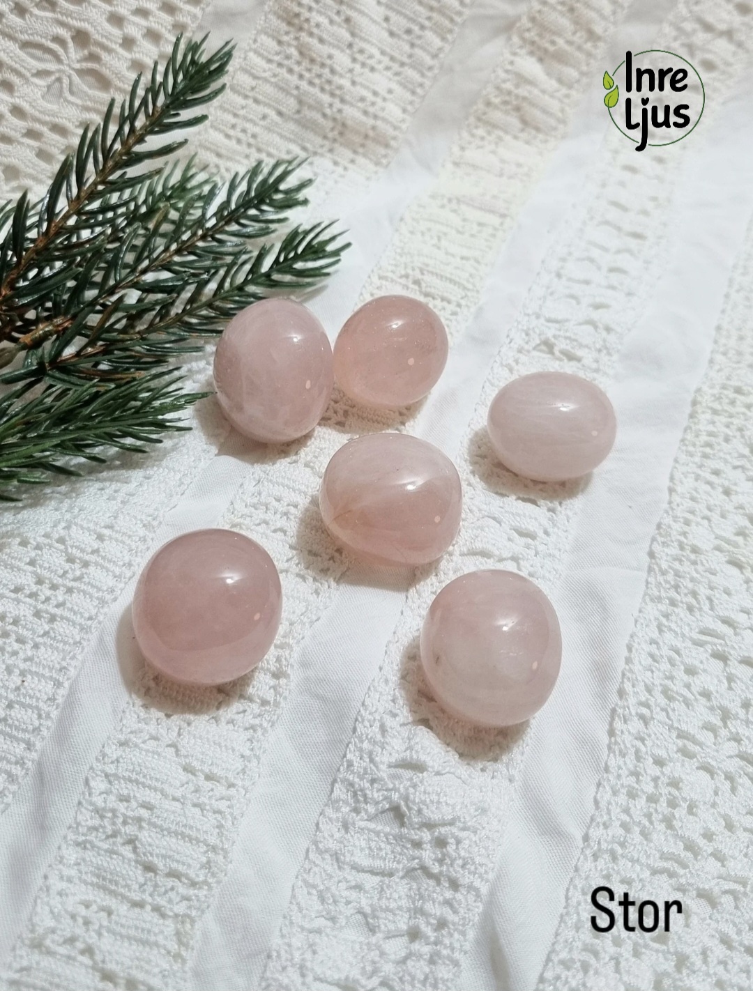 Rosenkvarts är en sten som ofta kallas för kärlekens sten. Den sägs vara lugnande, ge frid i hjärtat och främja kärlek och omtanke. Dessa stenar är väldigt söta och jämnt trumlade. Ca 2,5 x 3 cm.